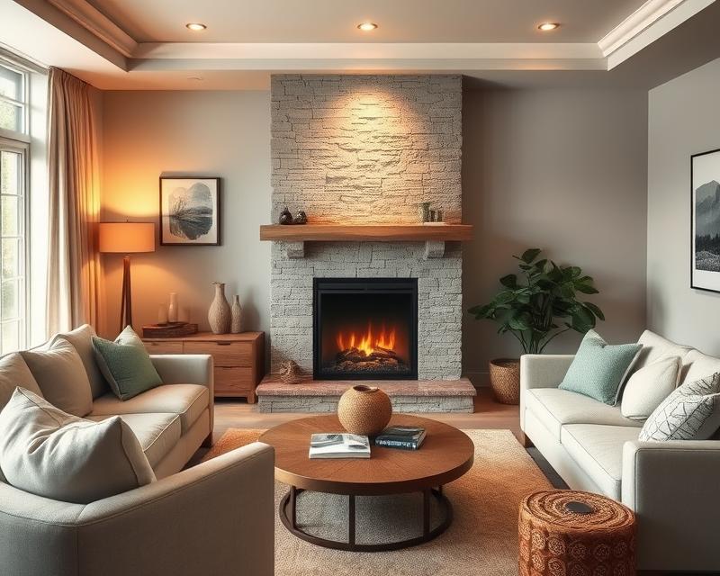 Równie ważne są elementy dekoracyjne, które wzbogacają całą kompozycję. Mogą to być różnorodne akcesoria do kominka – od narzędzi do obsługi ognia po eleganckie świece. Te dodatki potrafią podkreślić atmosferę płomieni i stworzyć przytulne otoczenie. Oświetlenie wokół kominka także ma kluczowe znaczenie; starannie dobrane lampy mogą dodać ciepła i przytulności.